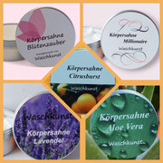 Unsere cremig - fluffig aufgeschlagene, reichhaltige Sheasahne mit viel Mandel - und Pfirsichkernöl macht Ihre Haut streichelweich und zart.